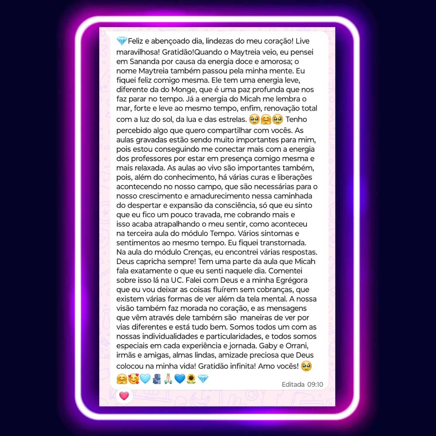 Guiados pelas docentes da 3D, Orraniely Sousa e Gaby Ah El’ivien Shaen, e por professores de outras dimensões, como Micah (Deus), Maitreya, Metraton, Sananda, Rowena, Monge, Sanat Kumara, Kalliel e tantos outros, percorremos uma jornada que não é do ego, mas da Essência.