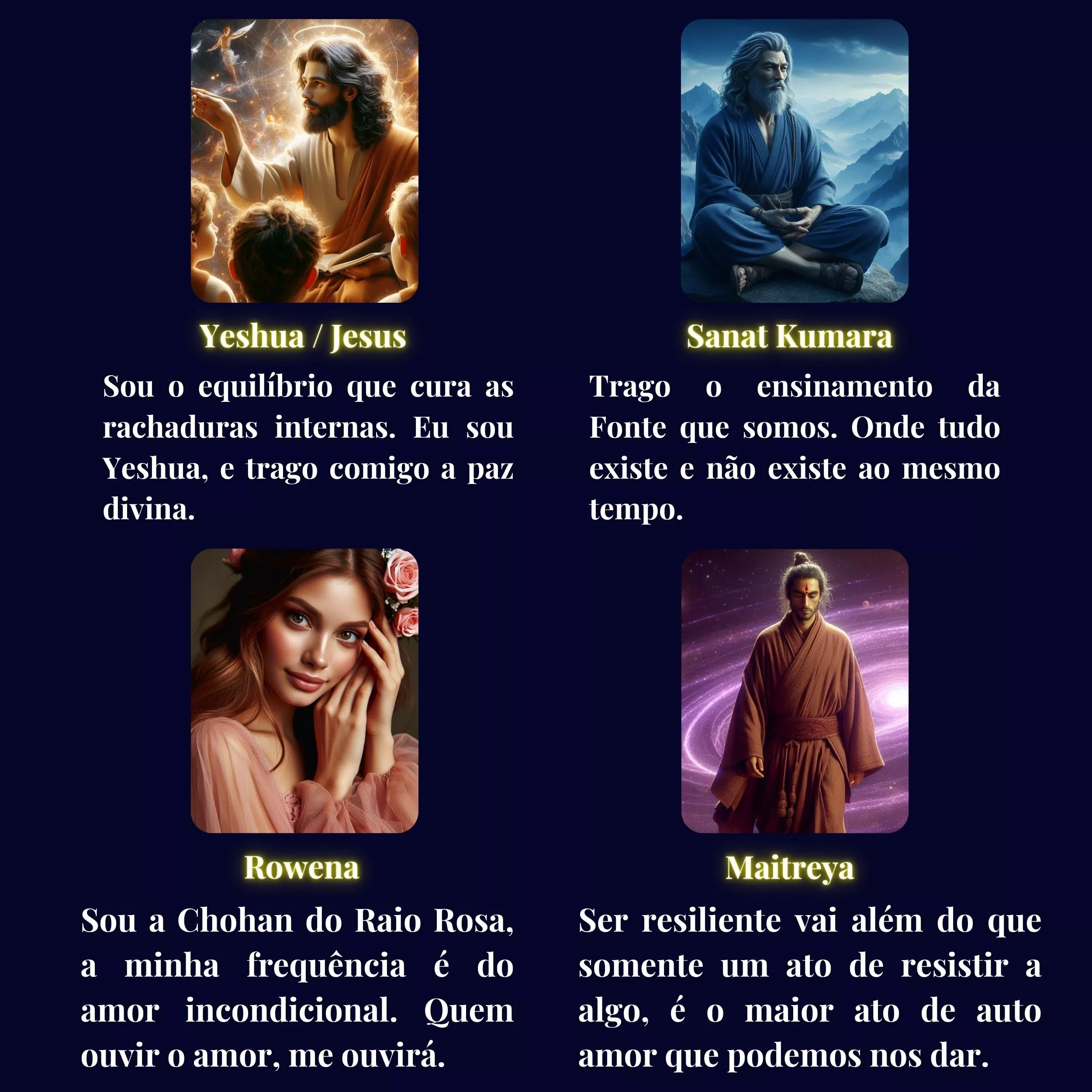 Guiados por docentes da 3D, Orraniely Sousa, Gaby Ah El’ivien Shaen e Sarah Florêncio, por professores de outras dimensões, como Micah (Deus), Maitreya, Metatron, Sananda, Rowena, Monge, Sanat Kumara, Kalliel e tantos outros, percorremos uma jornada que não é do ego, mas da Essência.