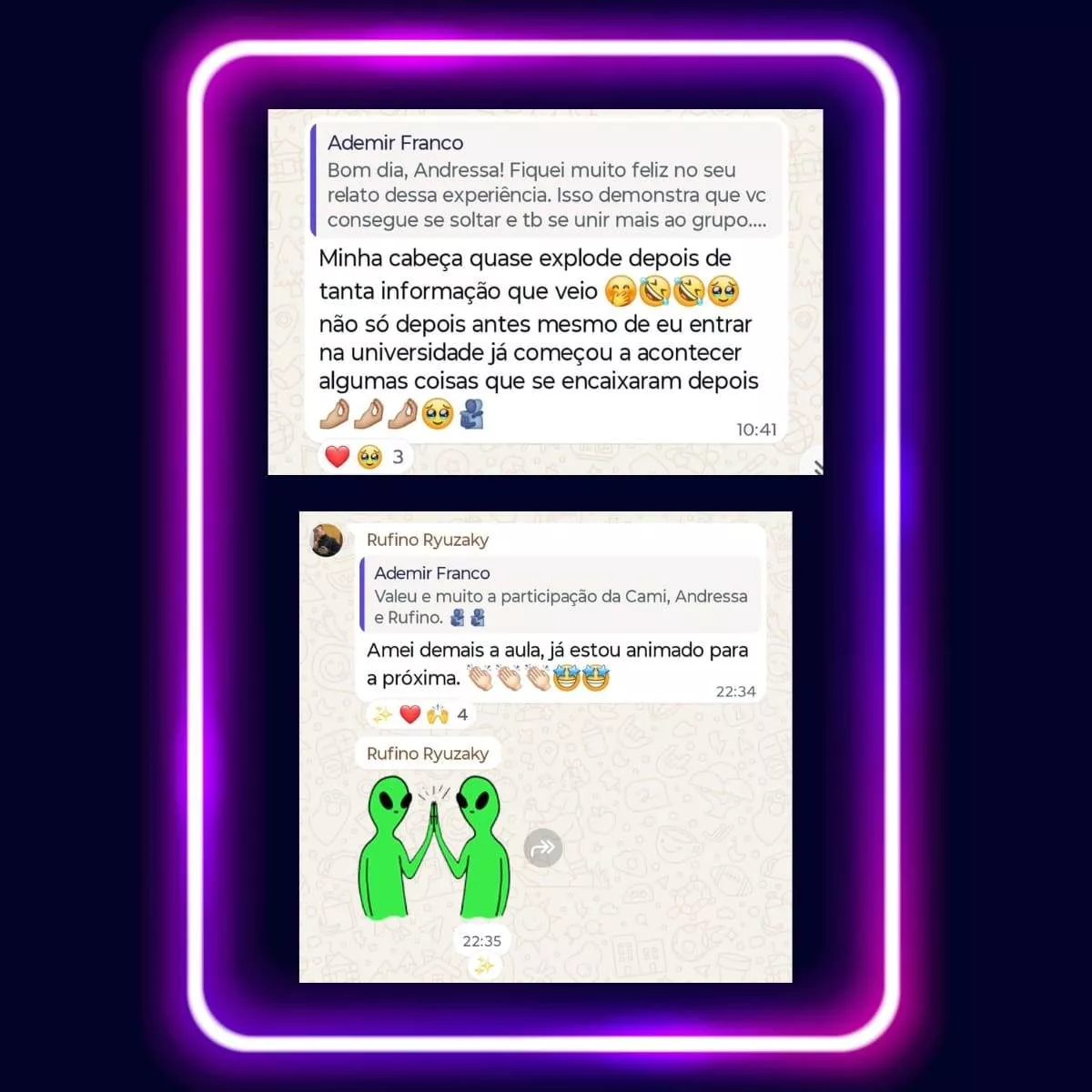 Se você é alguém que busca conhecimento fora da curva e totalmente sem limites + vivencias durante as aulas, você chegou ao local CERTO! Estamos de braços e corações abertos para recebê-los (las).